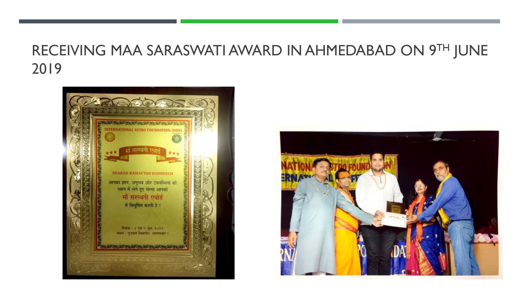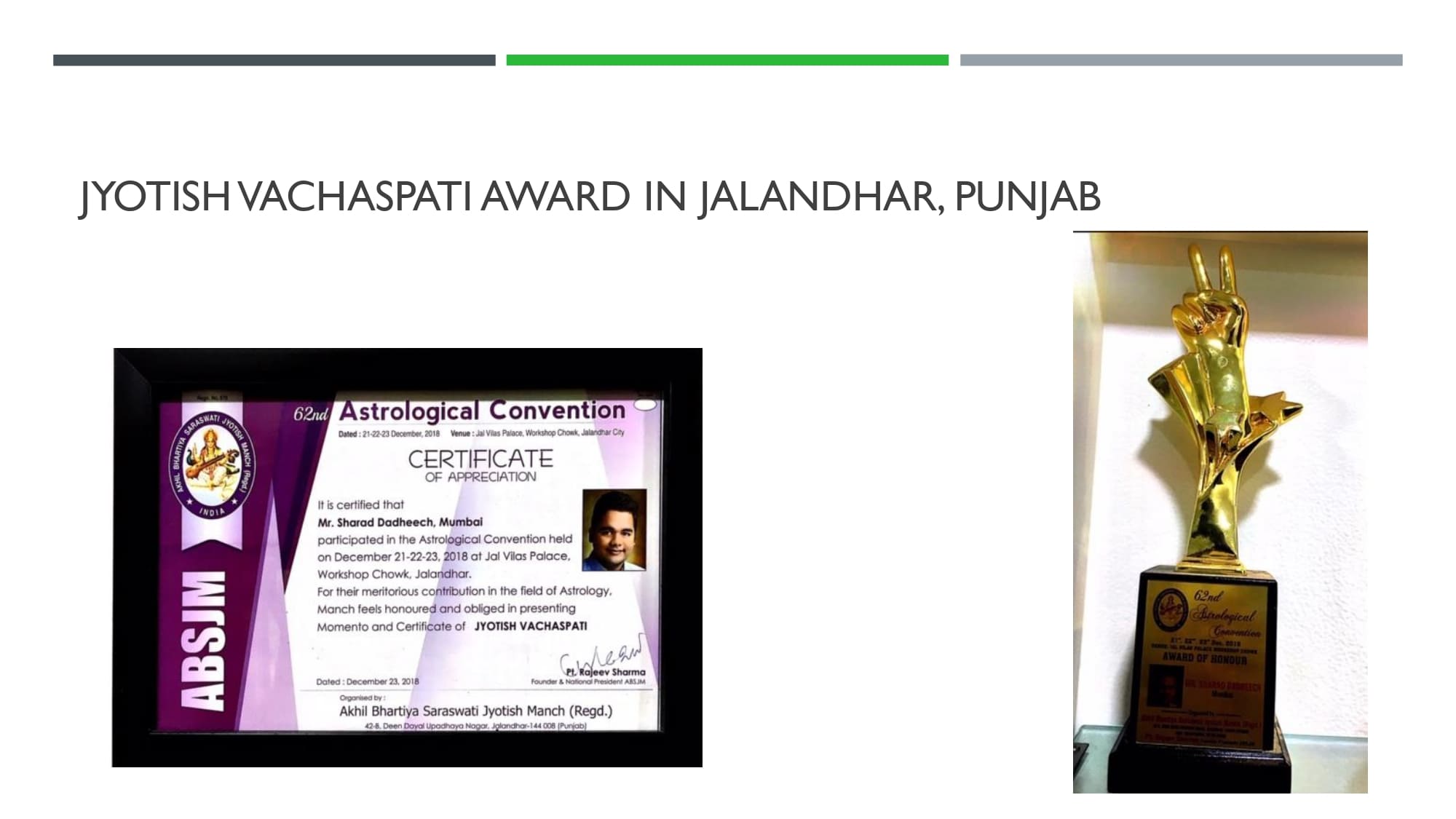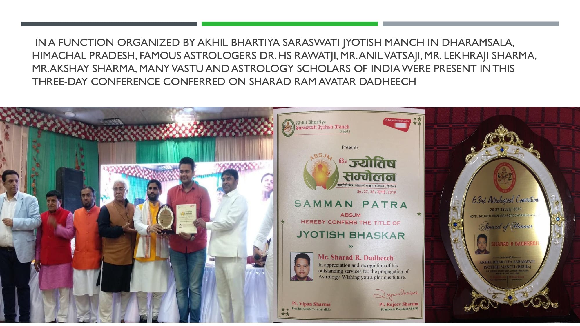 Awards Renowned astrologer Sharad Dhadeech has received acknowledgment for his proficiency in the profession from numerous committees. These esteemed awards are an indication to his dedication and accuracy. Our Journey